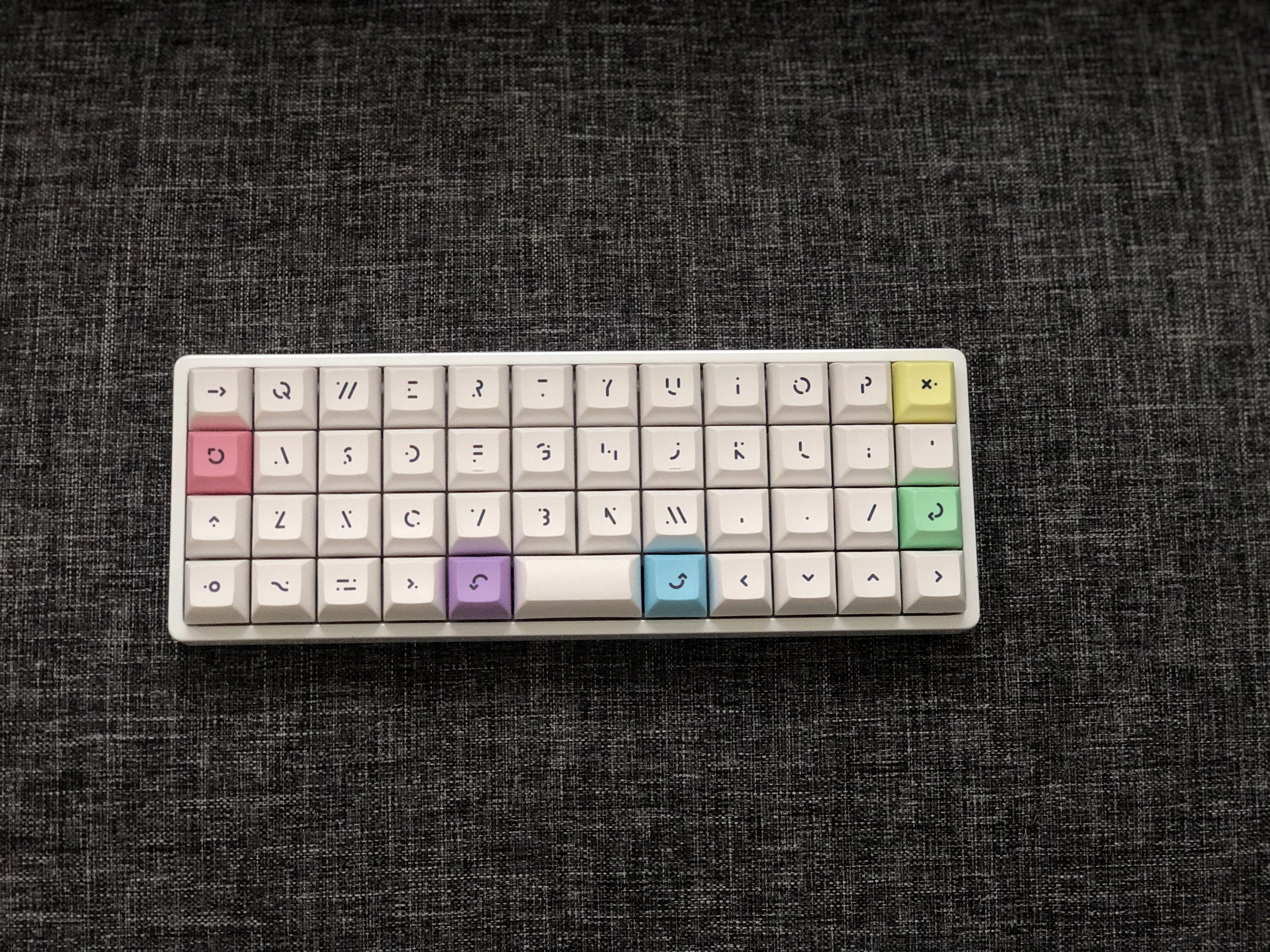 The Planck is a 4u x 12u ortho keyboard designed by OLKB. One of the notable facts about the keyboard is that the designer of the keyboard unintentionally used switch spacing of 19.00mm rather than the standard of 19.05mm, resulting in slightly less space between each key an potential, but unlikely keycap interference issues. The keyboard is after physicist Max Planck (citation needed). A version of the Planck called Preonic, with an additional row on the top for numbers, is also available.